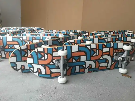 Wil je jouw ontwerp verdelen over meerdere decks (bijvoorbeeld 3 of 5) als installatie? Of zoek je een oplage voor een expositie, event of skatecrew? Wij verzorgen dit professioneel, snel en flexibel. Mail ons via offerte@fotogeschenk.nl voor advies of een vrijblijvende offerte.