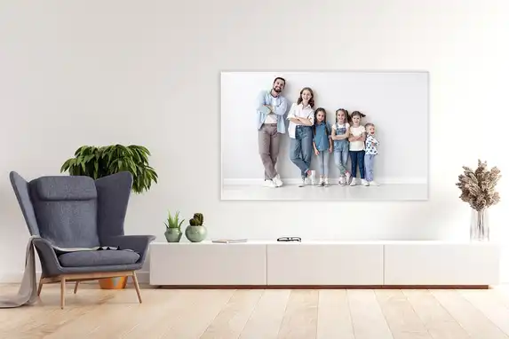 Onze onzichtbare ophangsystemen creëren een stijlvol zwevend effect met ca. 15 mm afstand tot de muur. Wil je het professioneel afwerken? Dan is een aluminium achterframe in verstek de premium keuze: het geeft maximale stevigheid en maakt ophangen kinderspel.