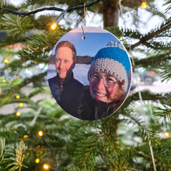 4 Kerstballen 2D van Fotogeschenk. Uw foto's/ontwerpen geprint op massief forex 3mm dik. Doorsnede 10 cm. Perfecte printkwaliteit!